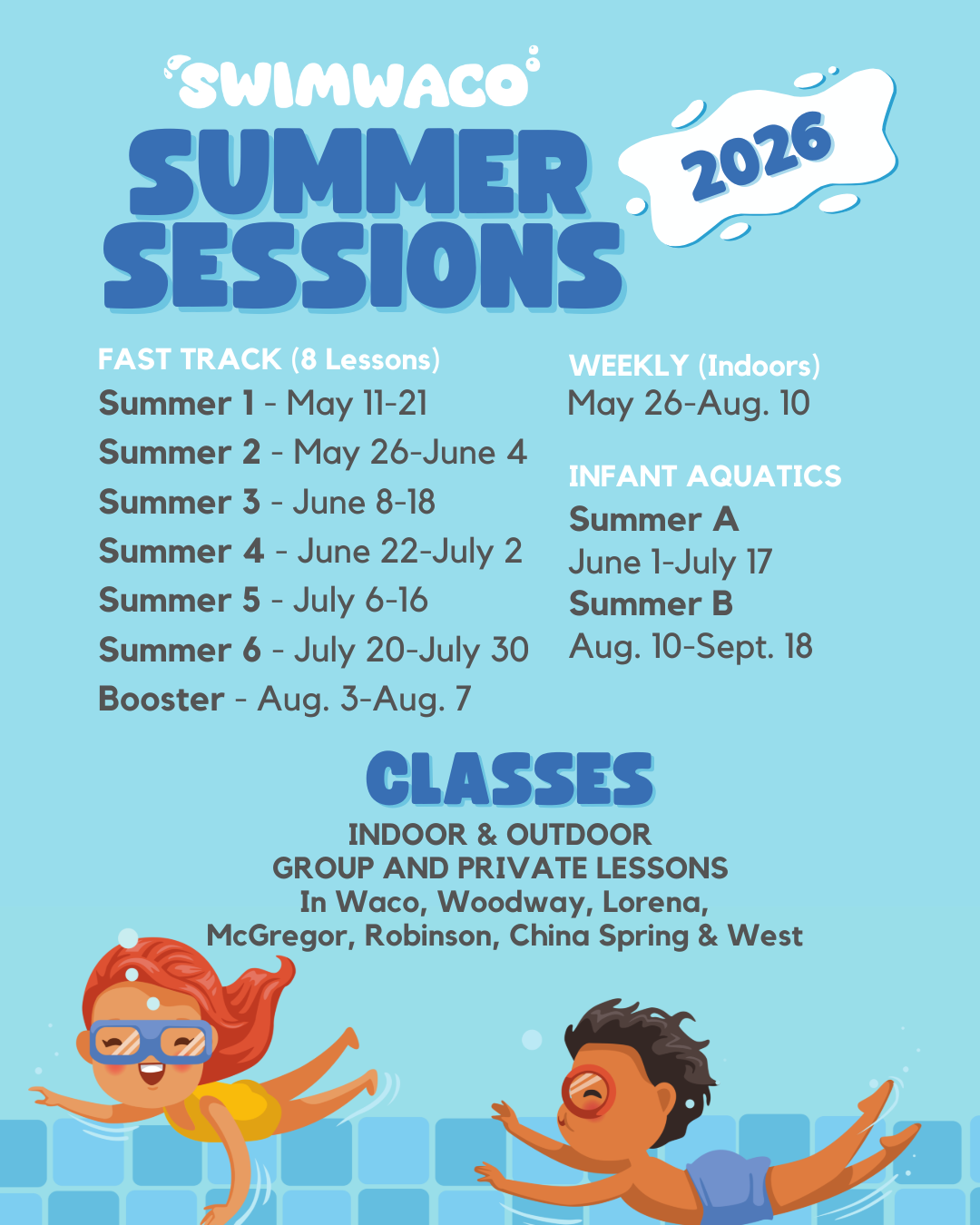 Posted on Julie FulcherTrustindex verifies that the original source of the review is Google. Ben was a fantastic teacher for our two-year-old! He was so patient with her. I would highly recommend Swim Kids Waco!Posted on Hannah KubacakTrustindex verifies that the original source of the review is Google. We have had a wonderful experience with this program. Miss Lahana has helped my toddler learn so many new skills and gain confidence in the water. She has been incredibly patient and provided great lessons for my strong-willed three-year-old. We will definitely continue using this program to further develop swimming skills.Posted on Ashley SaboriTrustindex verifies that the original source of the review is Google. Updated Review: We have been partaking in swim lessons with Swim Kids Waco since 2019 and are immensely delighted with the progress and success in our children’s learning & swim skills. Initially, our son started in lessons and currently he is swimming within their jr. swim team sessions. Our daughter is advancing nicely through their programs and can swim at a higher proficiency than we expected at her age. They are always excited to attend and enjoy the SKW staff who have an inherent ability to inspire courage and make each session both purposeful and fun. Their administrative coordination is top notch, very attentive and communicates well with parents. The Center, where they host sessions the majority of the year, also made some improvements to the locker rooms. Overall their commitment to high quality instruction, seamless coordination and innovative programming has continued to make our family loyal to their services. We look forward to further expansions as they move toward opening their own facility. Thank you for your dedication to our children’s safety and confidence in swimming ability. Previous Review: I am very happy with the quality of instruction that Swim Kids Waco provides to my child. The attention to detail and kind demeanor of the instructors really boost the value of their services. Coupled with the class size to instructor ratio, we have seen large improvements in our son’s swim ability and safety awareness. In my experience, the quality of this program shows the level of professionalism and commitment to not only skill but education (I grew up in a water centric family, lifeguarded for many years, and managed an aquatics program including swim instructors). They provide cost effective options to swim lessons, opportunities for makeup sessions, clearly defined expectations for each swim level, and dynamic instruction. They have definitely met my expectations and we will continue to enroll our children in future offerings. The only improvement I would humbly suggest would be maintenance and upkeep to the facility where the sessions are conducted, from what I can tell the majority of the time as the location can move depending on the season (The Center). I don’t believe this has a direct correlation to Swim Kids Waco, but they might want to make a suggestion (or continue to do so) to the facility that maintenance be prioritized in both the aquatic area and the locker rooms. The environment is not terrible, however, there are many opportunities for improvement. If the facility were in better repair I probably would have ranked five stars.Posted on Devon NyeTrustindex verifies that the original source of the review is Google. We have had a great experience with Swim Kids Waco! Our 3 year old is doing great with the spring session and loves Ms. Charlie! We also had a make up session with Mr. Ben and he was amazing as well! We are excited to get all the kids enrolled for summer!!Posted on Lacie GainesTrustindex verifies that the original source of the review is Google. We have loved our kiddos being with Swim Kids Waco! They have worked so well with both and especially our son who has Down Syndrome. It has helped him so much with muscle tone and plus.. they make it soo fun for him!Posted on Chelsy CorkTrustindex verifies that the original source of the review is Google. We’ve used Swim Kids Waco for all three of our children ranging from Infant Aquatics with our 17 month old, learning how to swim in a beginner level class with our 2.5 year old, abs building confidence in higher level classes with our 5 year old. Their instructors are gentle yet also encourage our kids to move out of their comfort zone and actually learn how to swim. They prioritize water safety and are very efficient with their lessons. We come back summer after summer and have had multiple instructors. Each experience has been wonderful! The owners are the nicest family and truly care about kids being safe around water.Posted on Kallie BoydTrustindex verifies that the original source of the review is Google. My son looked forward to swim class every day! The process was excellent and the instructors were so great with him!Posted on Kelly StilwellTrustindex verifies that the original source of the review is Google. We love SKW! In just a few months my kids went from being non-swimmers to swimming across the pool on their own. They look forward to lessons with Miss Allie every week! She is fun and encouraging while also holding them accountable to do their best and grow their comfort zones. Everything we could hope for in an instructor! We are grateful!Posted on Brandy STrustindex verifies that the original source of the review is Google. Update: we now have our 3 and 5 year old in swim classes and they love it!! Our 3 yr old HATED water and Swim Kids Waco has completely changed that for us! I would recommend over and over again. We’ve been with Swim Kids Waco for a year and a half. We started in the parent and me classes when our oldest was 2 yo. We initially started solely to teach our son water safety. Our son loves it so much that we keep going for the skills!! He’s learned so much and can swim at just 4yo thanks to Swim Kids Waco!!!Posted on Camryn AielloTrustindex verifies that 